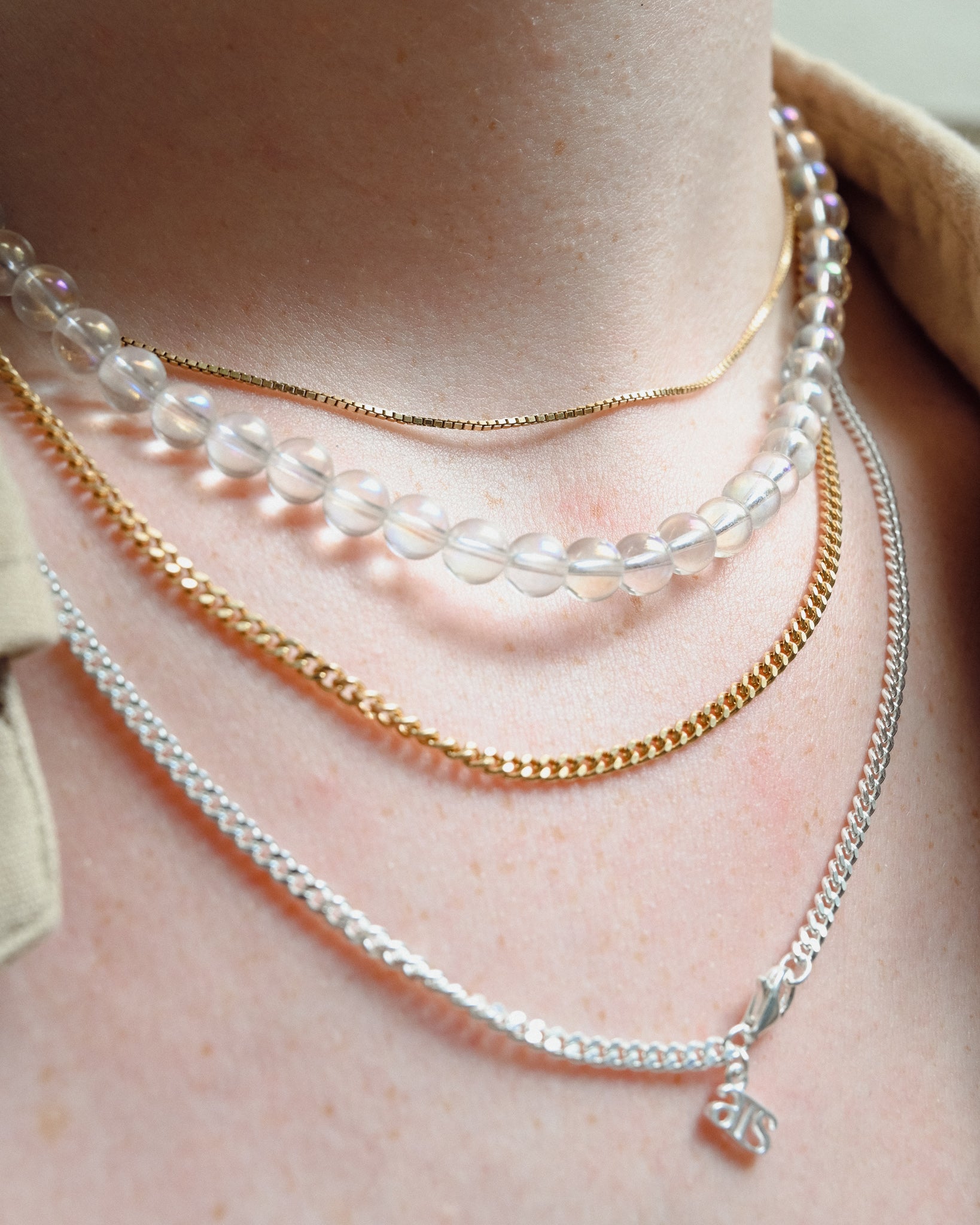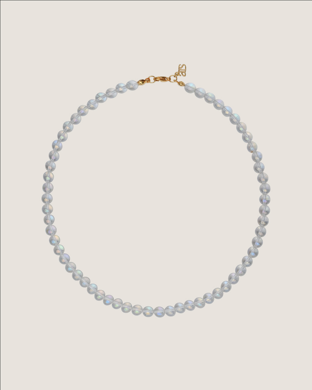 Unsere Glassy Necklace transparent sorgt mit ihren durchsichtigen Glasperlen für einen dezenten und dennoch besonderen Look.