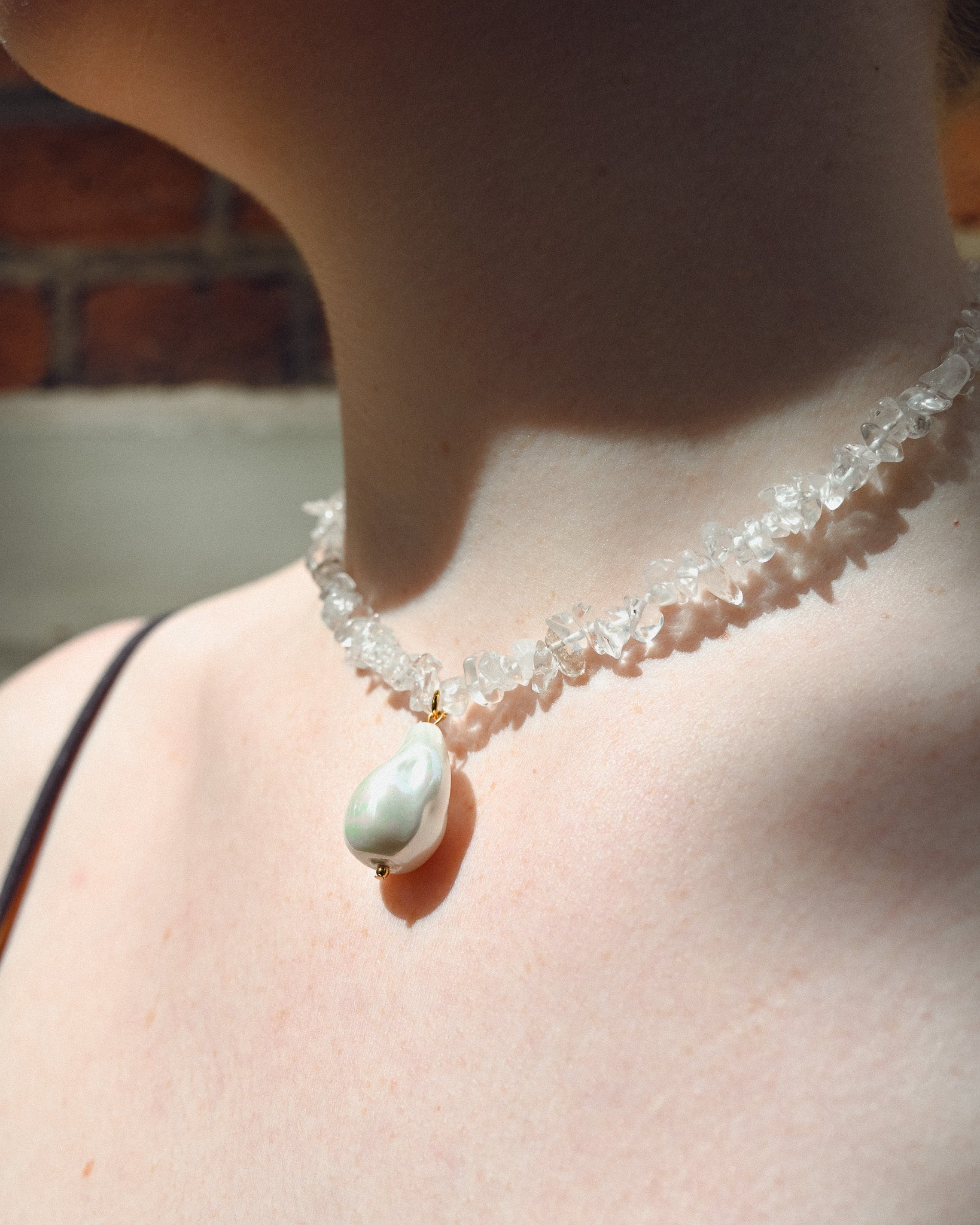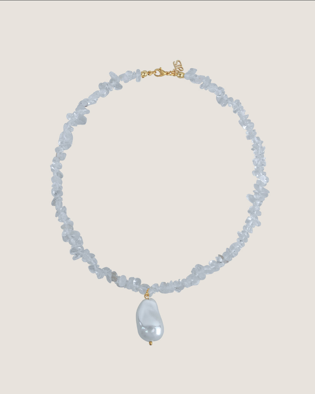 Die Angel Necklace ist mit ihren auffälligen, unsymmetrischen Glasperlen und der großen Keshi Perle ein echter Hingucker. Die Kette lässt sich ideal als It-Piece zu schlichteren Outfits kombinieren & verleiht vor allem sommerlichen Looks das gewisse etwas.
