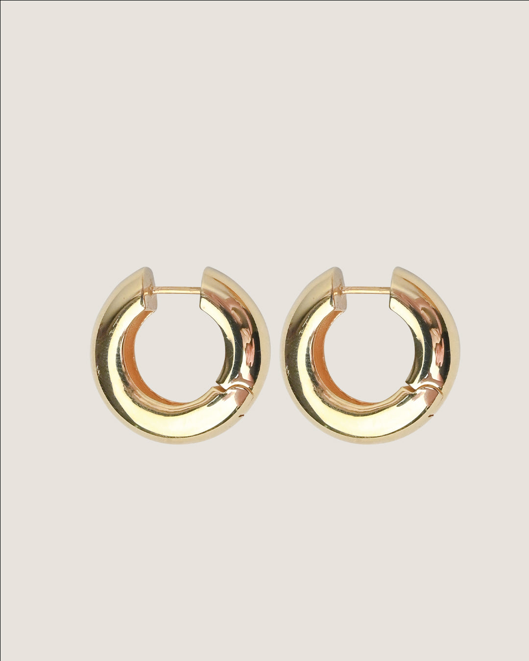 Unsere Bold Hoops small in gold zaubern einen cleanen classy Look und eignen sich besonders für diejenigen, die sowohl auffälligere, aber dennoch dezente Styles bevorzugen. Ein echtes Must-Have für jeden Tag!
