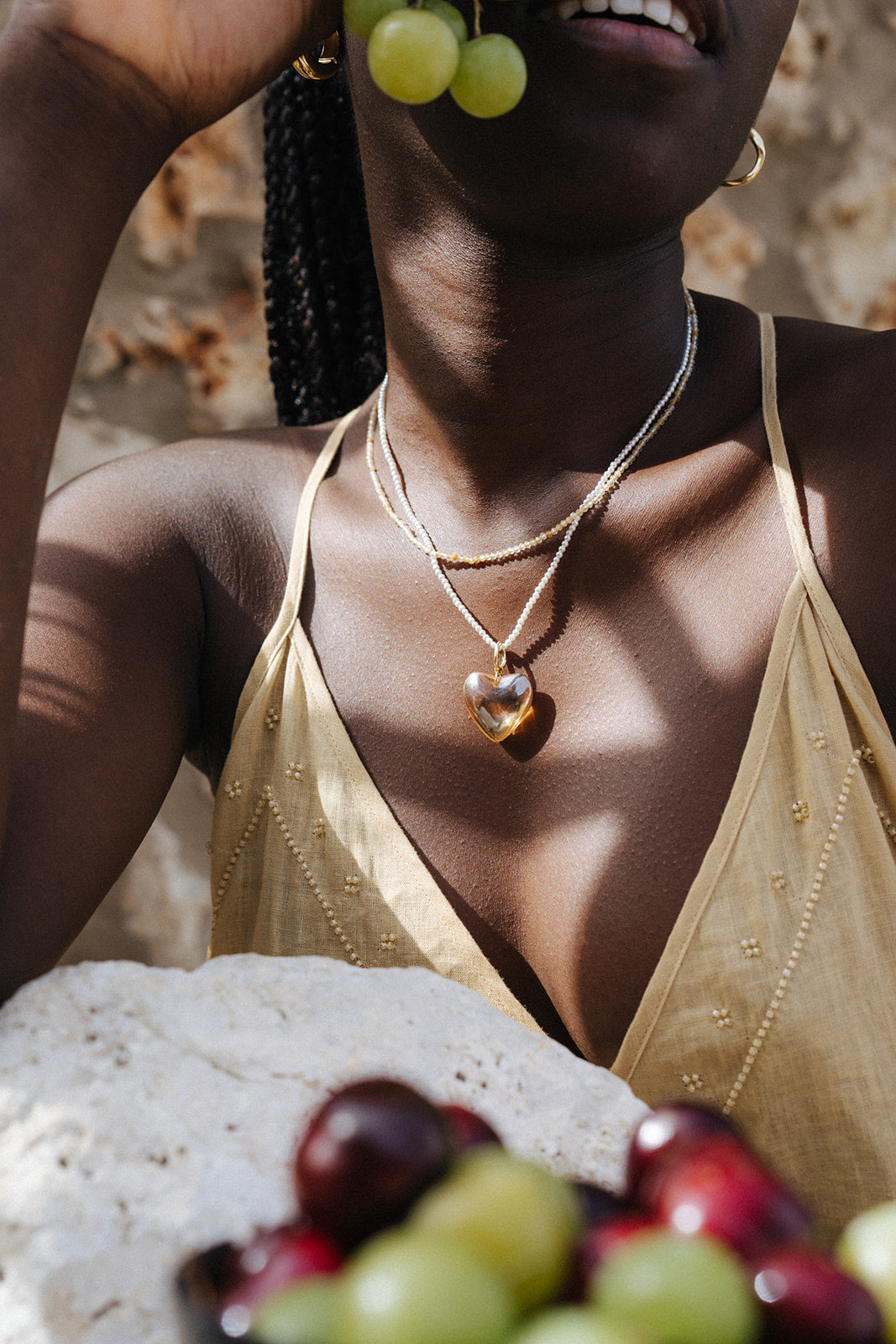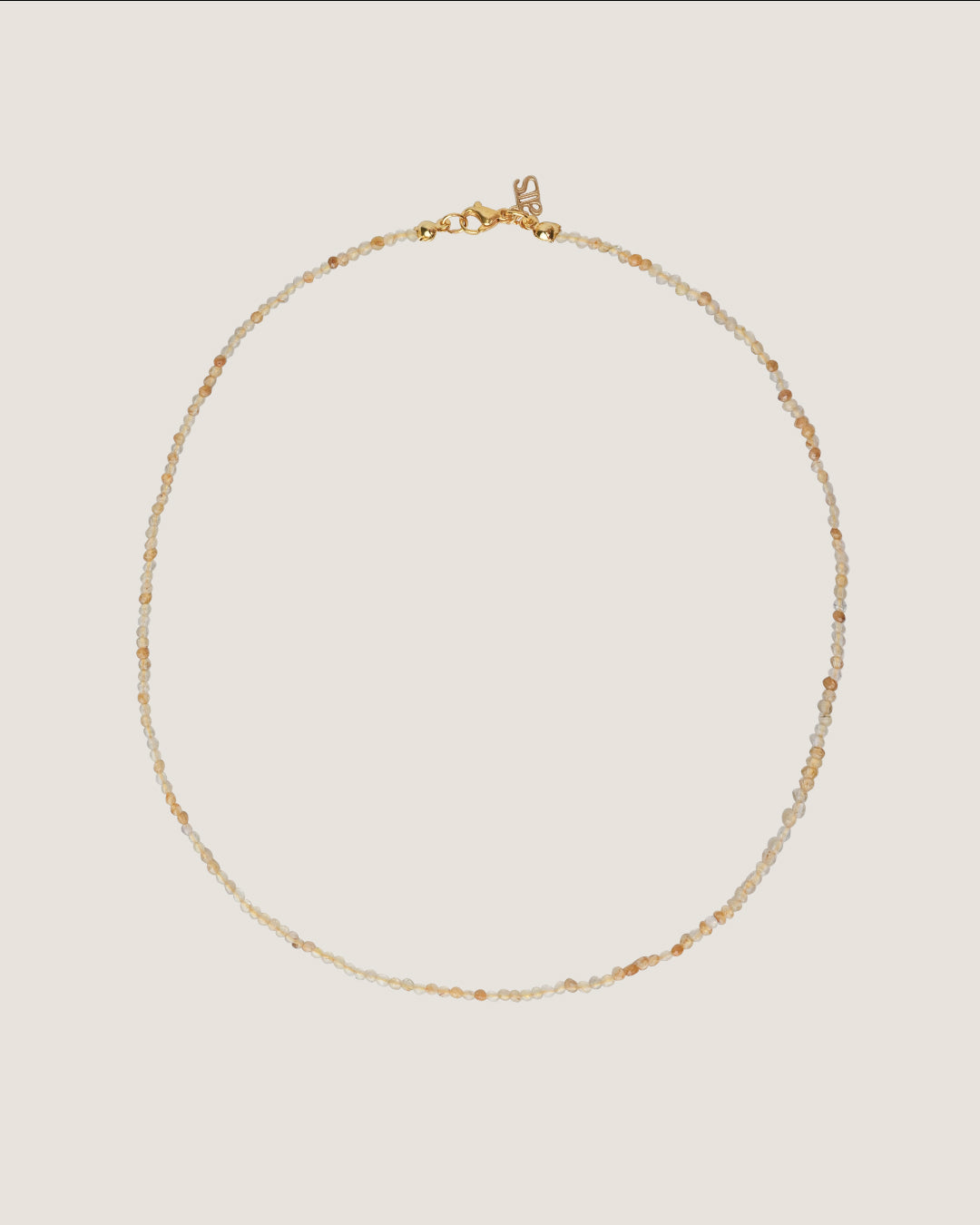 Schlicht mit einem kleinen Funkel. Unsere Desert Necklace mit ihren sandfarbenen Perlen ist schlicht, passt zu den meisten Outfits und verleiht einen dezenten Schimmer. Ideal lässt sich die Kette zu anderen Süßwasser oder goldenen Ketten kombinieren.