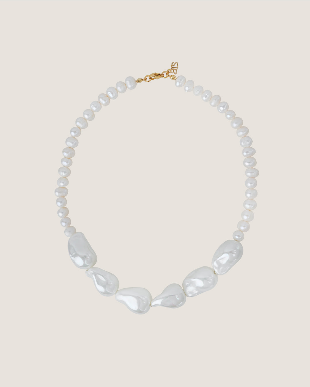 Unsere Royal Necklace ist DIE Kette für alle Perlen-Lover. Große Keshi Perlen in Kombination mit runden Süßwasserperlen, sorgen für einen modernen und doch sehr royalen Look. Diese Halskette ist immer ein absoluter Showstopper.